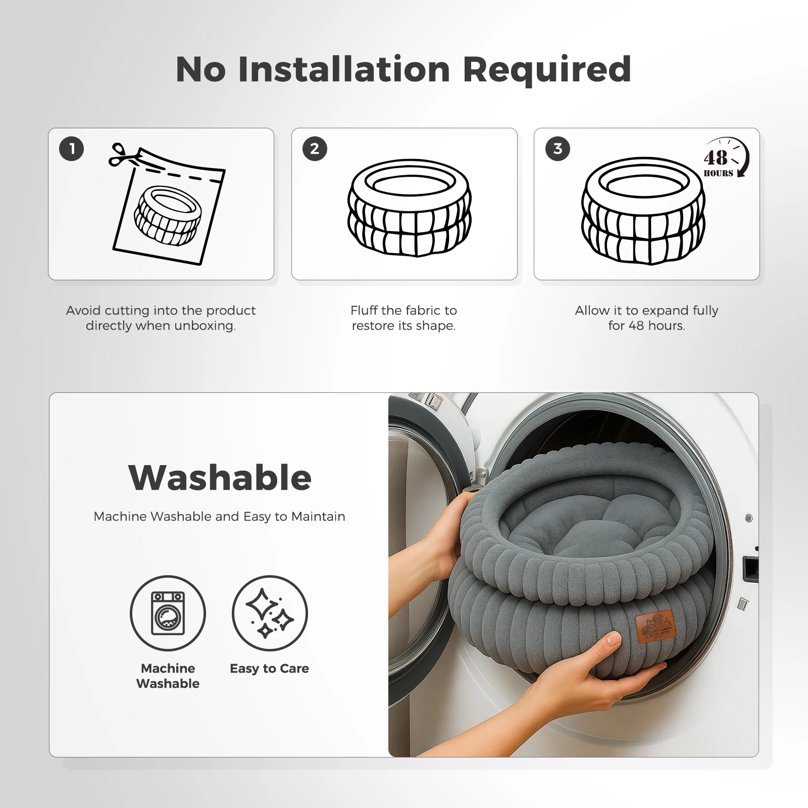 Dog Bed for Medium Dogs – Cozy Washable Round Pet Bed with Anti-Slip Bottom, Indoor Cat Bed Suitable for All Seasons